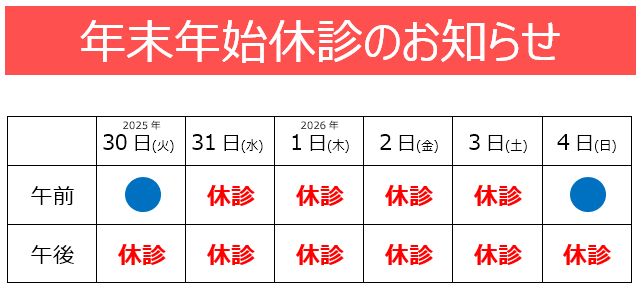 年末年始休診のお知らせ